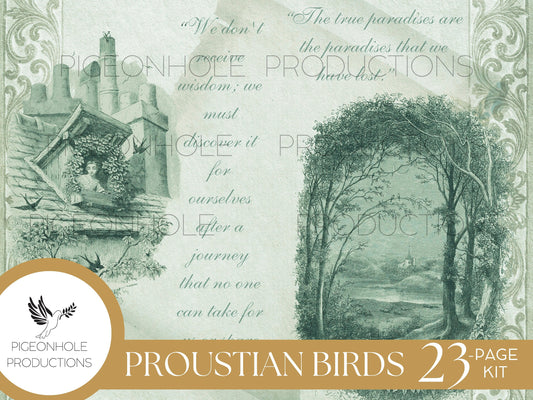 TEAL Proustian Birds Junk Journal Kit, PRINTABLE— 23 pages, backgrounds, ephemera—beautiful vintage bird illustrations and uplifting quotes!