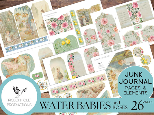 Water Babies Fairies & Roses Junk Journal Kit, PRINTABLE— 26 pages, backgrounds, elements—Literature Lover's Kit 2—water fairies