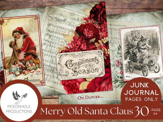 Vintage Merry Old Santa Claus Junk Journal Kit, pages only—PRINTABLE—30 pages, tribute to the Santa art of Thomas Nast