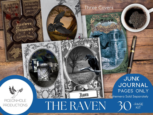 The Raven Junk Journal Kit Pages Only—PRINTABLE—Halloween Goth—tribute to The Raven & The Legend of Sleepy Hollow—beautiful bird scenes!