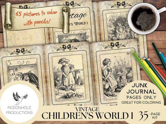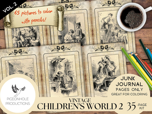 Vintage Children's World VOLUME 2 Junk Journal Coloring Pages, PRINTABLE, sweet old images of children. Great for coloring and journaling!