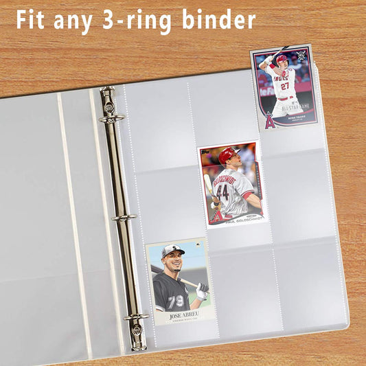 Toupeone 9-Pocket Baseball Card Sleeves for 3 Ring Binder Clear Plastic Trading Card Page Protectors Sheet (30 Pages)