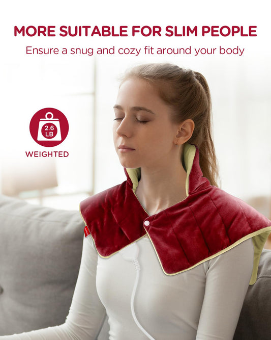 Heating Pad for Neck and Shoulders and Back Pain Relief, Comfytemp Fathers Day Dad Gifts, FSA HSA Eligible Weighted Electric Heat Pad, 2.6lb Large Heated Wrap, Women Men Mom Dad Birthday Gifts, Red