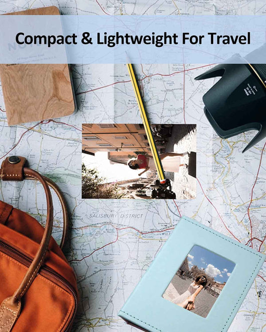Small Photo Album 4x6 2-Pack - Simple Leather Hardcover with Front Display, Each Mini Photo Album 4x6 50 Photos for 4x6 Pictures, Artwork or Postcards Storage, (Ice Blue, 2PK)
