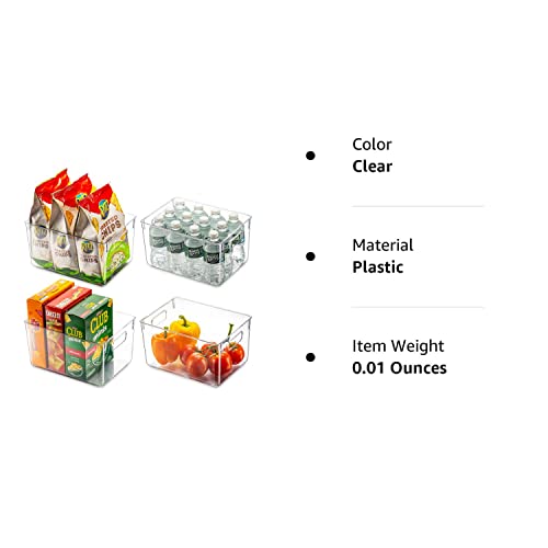 Set Of 4 Clear Pantry Organizer Bins Household Plastic Food Storage Basket with Cutout Handles for Kitchen, Countertops, Cabinets, Refrigerator, Freezer, Bedrooms, Bathrooms - 11" Wide