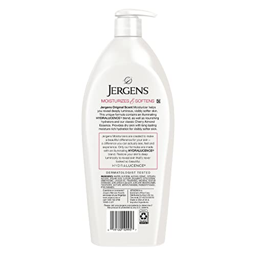 Jergens Original Scent Dry Skin Lotion, Body and Hand Moisturizer for Long Lasting Skin Hydration, with HYDRALUCENCE blend and Cherry Almond Essence, 32 Ounce