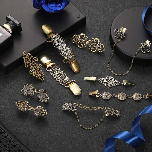 10 Pieces Retro Cardigan Clip Vintage Sweater Swirl Clip Antique Flowers Pattern Shawl Clips Sweater Collar Clip Dresses Shawl Clip Shirt Brooch Clip for Women Girls Mother's Day Gift (Bronze Color)