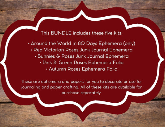 Roses Junk Journal Ephemera BUNDLE, includes 5 kits of tags, tucks, pockets, labels, fussy cuts, envelopes, papers, more!
