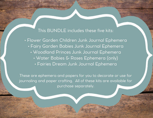Magical Fairies Junk Journal Ephemera BUNDLE, includes 5 kits of tags, tucks, pockets, labels, fussy cuts, envelopes, papers, more!