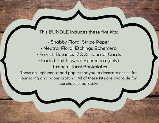 Faded Flowers Junk Journal Ephemera BUNDLE, includes 5 kits of tags, tucks, pockets, labels, fussy cuts, envelopes, papers, more!