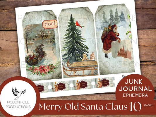 Vintage Merry Old Santa Claus Junk Journal EPHEMERA—PRINTABLE—70+ journal cards, tags, tucks, pockets, envelopes, tickets, more