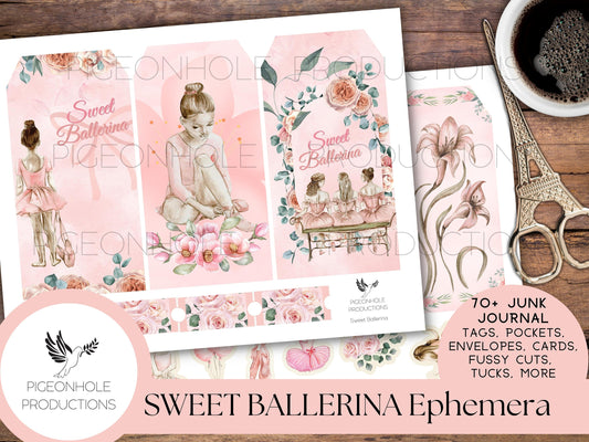 Sweet Ballerina Junk Journal EPHEMERA—PRINTABLE—70+ journal cards, tags, tucks, pockets, envelopes, tickets, more—page kit sold separately