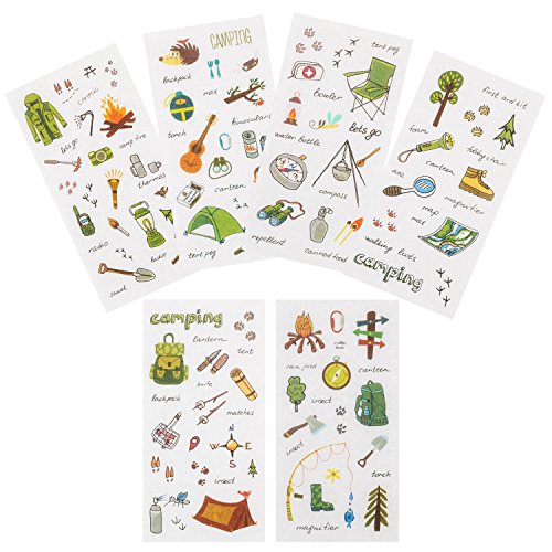 36 Sheets Stickers Set, Camping Stickers Set Decorative Sticker Collection for Scrapbooking, Calendars, Arts, Kids DIY Crafts, Album, Bullet Journals (Camping Theme)