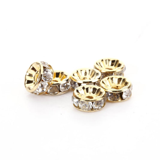 BRCbeads 8mm Gold Plated Crystal Rondelle Spacer Beads 100pcs per Bag for jewelery Making(#001 Clear Crystal)
