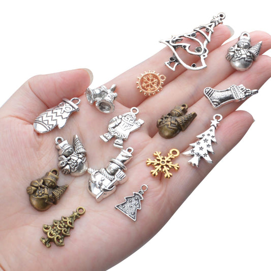 100 Gram Christmas Charms Assorted Antique Pendants Snowflake Tree Stocking Snowman Mixed Colors for Jewelry Making
