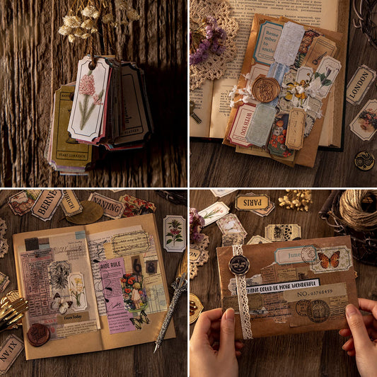 Vintage Style Label Stickers Set (180 Pieces), Decorative Nature Butterfly Retro Flower Manuscript Old Fashion Music Sheets Decals for Art Journaling Scrapbooking Planner Bullet Junk Journal Supplies