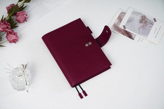 Moterm Leather Cover for Stalogy B6 - with Back Pocket, Pen Loop and Card Slots (Firm Pebbled-Beetroot, B6+)