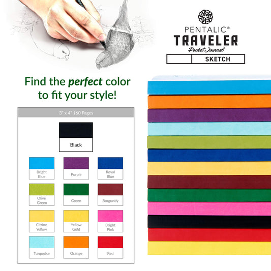 Pentalic 3" x 4" Pocket Sketchbook Traveler Journal, 160 Pages, Black