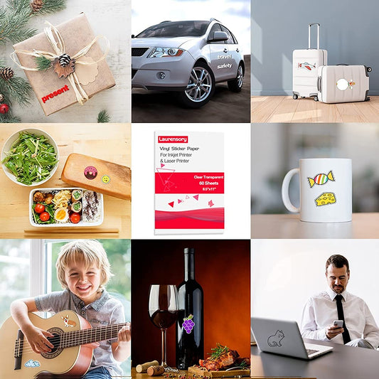 Printable Sticker Paper 60 Sheets - Clear Transparent - Premium Waterproof Sticker Paper for Inkjet Printer and Laser Printer - Decal Sheets Self-Adhesive Label Paper - 8.5"X11" A4