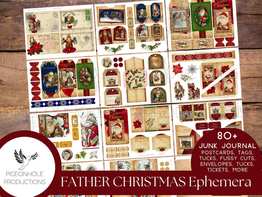 Father Christmas Junk Journal Ephemera—PRINTABLE—80+ postcards, tags, tucks, pockets, envelopes, fussy cuts, tuckets, more!
