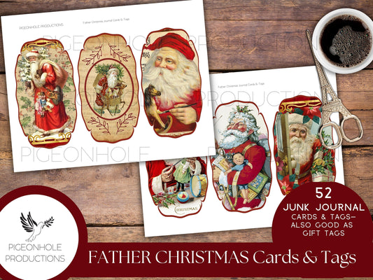 Father Christmas Junk Journal Cards & Gift Tags—PRINTABLE—52 journal cards—print reduced size for gift tags—Father Christmas