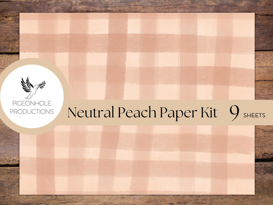 Neutral Peach Paper Kit—PRINTABLE—9 sheets—BONUS pocket template & instructions—for junk journals, scrapbooking, papercrafts, tags, pockets