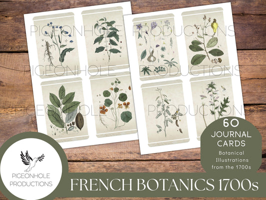 60 French Botanical Journal Cards, 1700s, PRINTABLE, lovely vintage illustrations, use for junk journal cards, tags, pockets, other ephemera