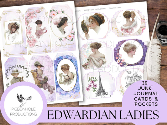 36 Edwardian Ladies Junk Journal Cards & Pockets, PRINTABLE, tribute to Harrison Fisher's illustrations—coordinating journal sold separately