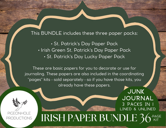 Irish Green Paper Pack BUNDLE, PRINTABLE, 36 green papers for junk journals and other paper crafts—coordinating pages and ephemera available