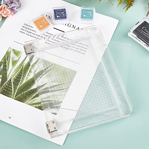 PH PandaHall Stamp Platform Tool 5.9x7.7" Acrylic Stamp Block Positioning Stamping with Grid Lines for Accurate Craft Stamping Card Making Journals Scrapbooking