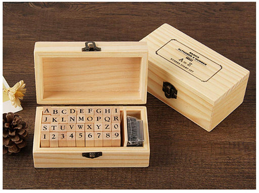 Alphabet Stamps Set,Vintage Wooden Rubber A-Z Letters and Numbers Diary Stamp Kit for Children DIY Scrapbooking Planner Card Making(36pcs)